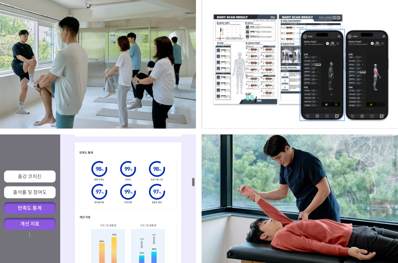 • 통증 완화, 체형 교정 등을 위한 맞춤형 피트니스 프로그램 운영